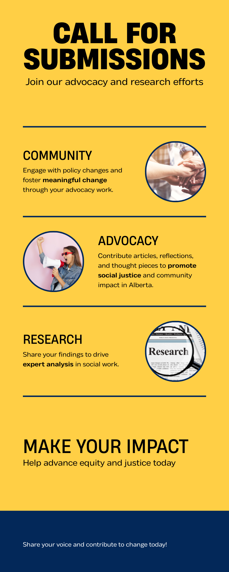 By sharing your work, you help strengthen the profession, inspire fellow social workers, and build collective momentum for equity, justice, and meaningful change across Alberta.
